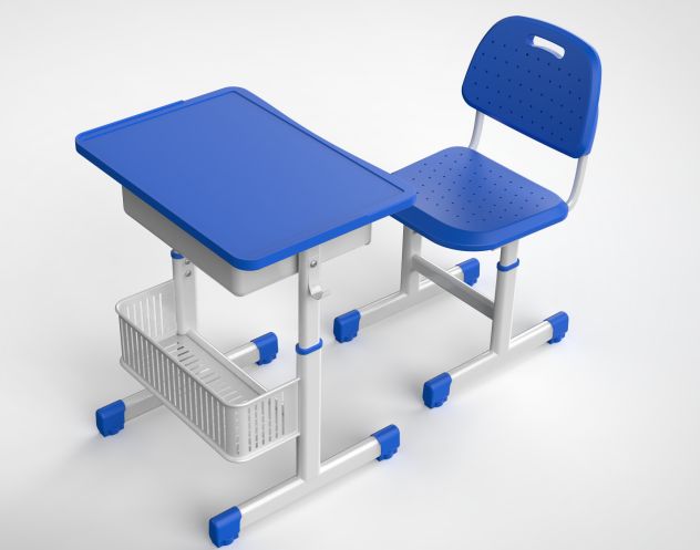 (1)课桌面板:面板制作模具需要蚀纹处理,使得台面有哑光磨砂质感,颜色为蓝色,采用高密度聚乙烯(HDPE)5502为原料,中空吹塑工艺制作。(2)课桌面板符合GB 28481-2012《塑料家具中有害物质限量》国家标准,并且符合GB/T 32487-2016 《塑料家具通用技术条件》耐老化性能要求(室内用500h)的国家标准。