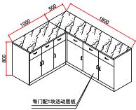 1、柜体面板:采用15mm(±1mm)厚优质人造大理石,表面持久亮丽、强度高、防渗透、耐腐蚀、耐污染,耐冲击性、抗划痕性能好。 表面无凹凸不平的手感,拼缝无胶水线,无起伏状,表面颗粒颜色均匀、板材侧面无气泡,耐磨、耐刮。
