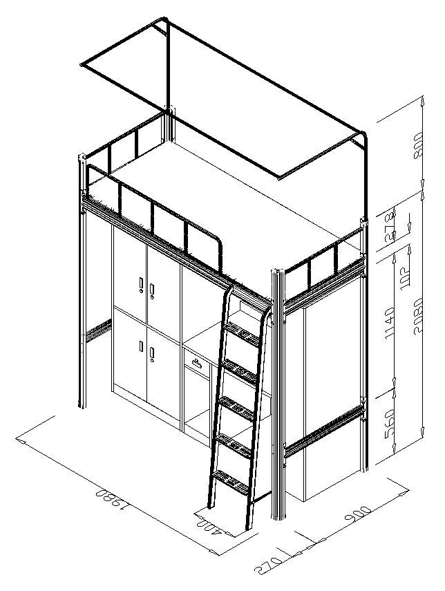 1、铁架床部分:规格:长1980mm*深900mm*高2080mm/2880mm,